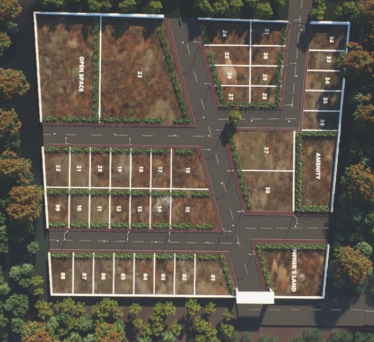 Experience luxury living with our premium plots at Raghunandan Park, offering essential facilities and a serene environment for your future residence.
